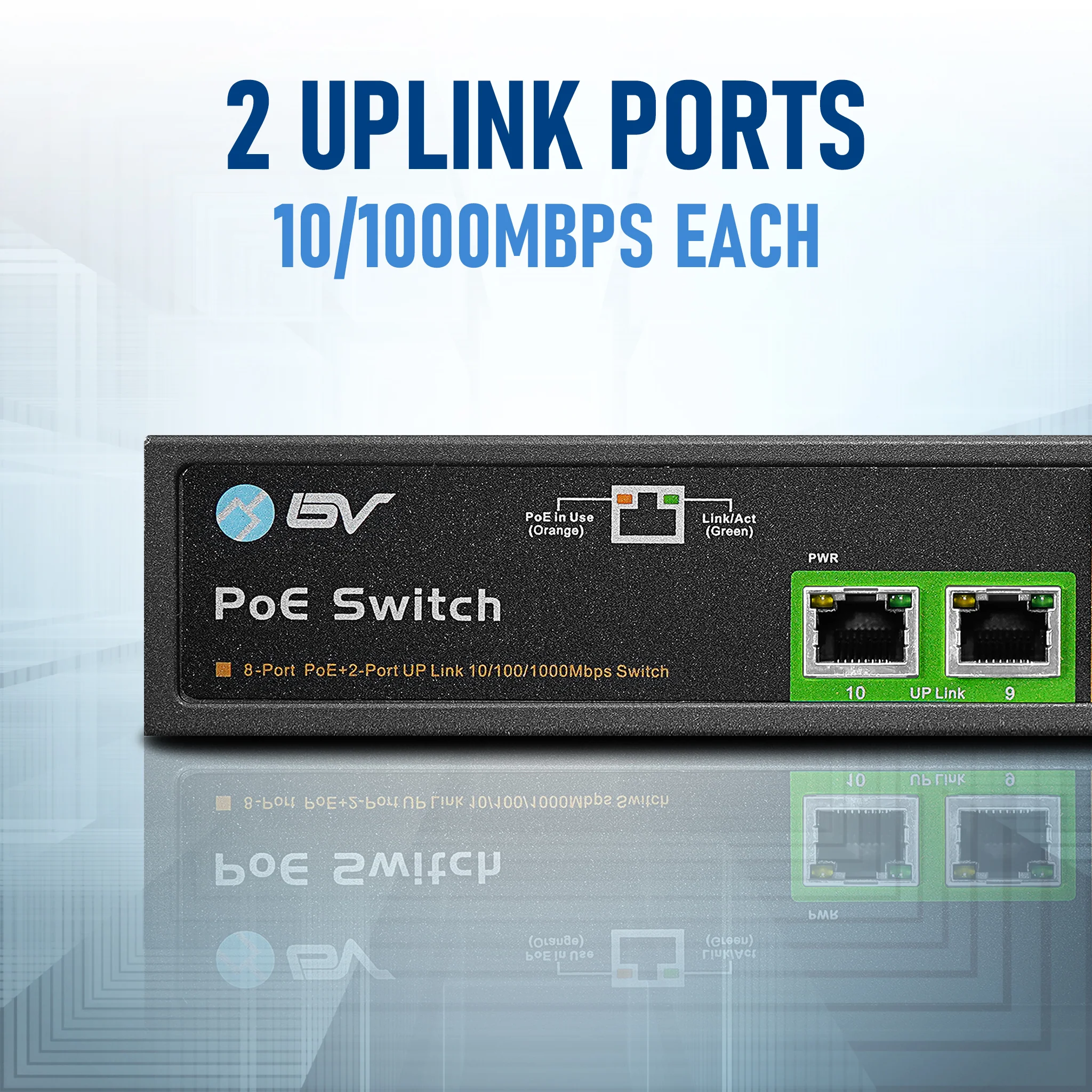 BV-Tech 8 Port PoE+ Gigabit Ethernet Switch with 2 Uplinks - 130W | POE-SW802G