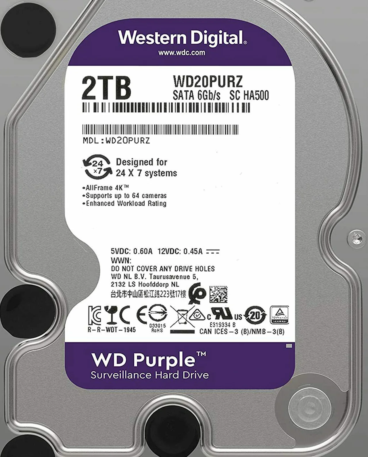 Western Digital Purple Surveillance Hard Drives are engineered specifically for surveillance to help withstand the elevated heat fluctuations and equipment vibrations within NVR environments.